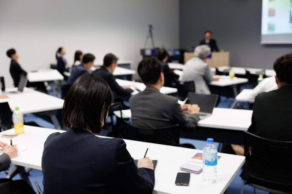 ほとんどの回は都内のカンファレンスルームにて開講いたしますが、遠方で来れない研究員のためにオンライン(Zoom)でも参加できるよう設計しています。